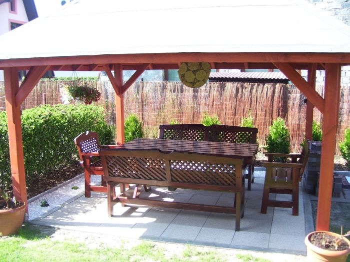 Altana ogrodowa na betonwej podbudowie.